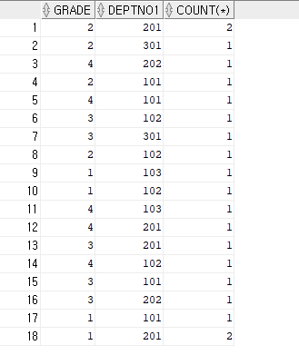 -- 각각의 컬럼으로 그룹화하여 결과 리턴