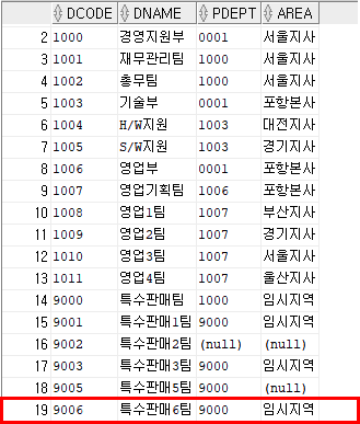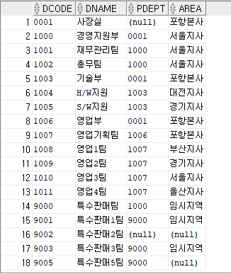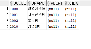 (3) insert into dept12(dcode, dname) select dcode, dname from dept2 where area = '서울지사'