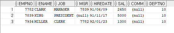 -- 부서번호 : 10, 부서명 : ACCOUNT
