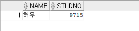 - Quiz 이름이 우로 끝나고 앞에 하나의 글자수만 있는 학생이름, 학번 출력하기
