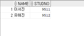 - QUIZ 학생의 이름이 홍길동, 김문호, 유해진인 학생의 이름 출력하기