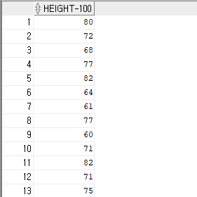- Quiz 학생의 키에 100을 빼서 출력하기