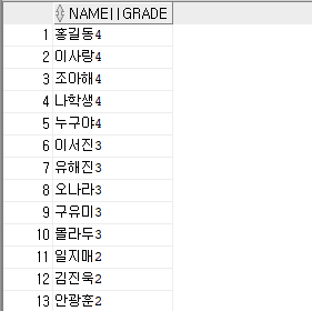 1) 연결 연산자 : 컬럼과 컬럼, 컬럼과 리터럴 등의 내용을 연결해 줄 수 있다.