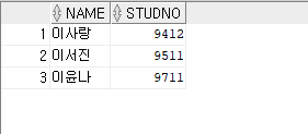 - QUIZ 학생의 이름이 홍길동, 김문호, 유해진인 학생의 이름 출력하기