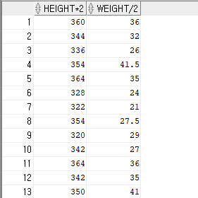 - Quiz 학생의 키에 2를 곱하고, 몸무게에 2를 나눠서 출력하기