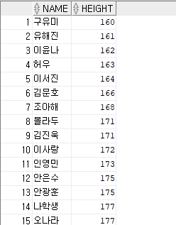 ORDER BY HEIGHT ASC (또는 생략 가능) ;