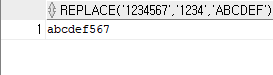 replace(컬럼명 또는 문자열, '문자1', '문자2') : 문자열에서 문자1을 문자2로 치환해줍니다.