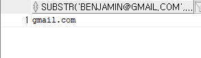*** 정답: Instr로 @의 위치를 찾고, 메일의 처음부터 @의 바로 앞 글자까지, 즉 '@-1'번째 숫자를 추출해서