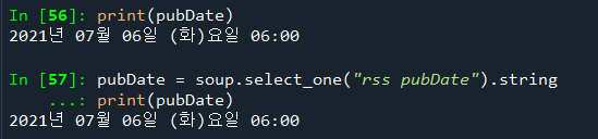 # BeautifulSoup 객체를 이용해서 작성된 날짜와 시간 정보